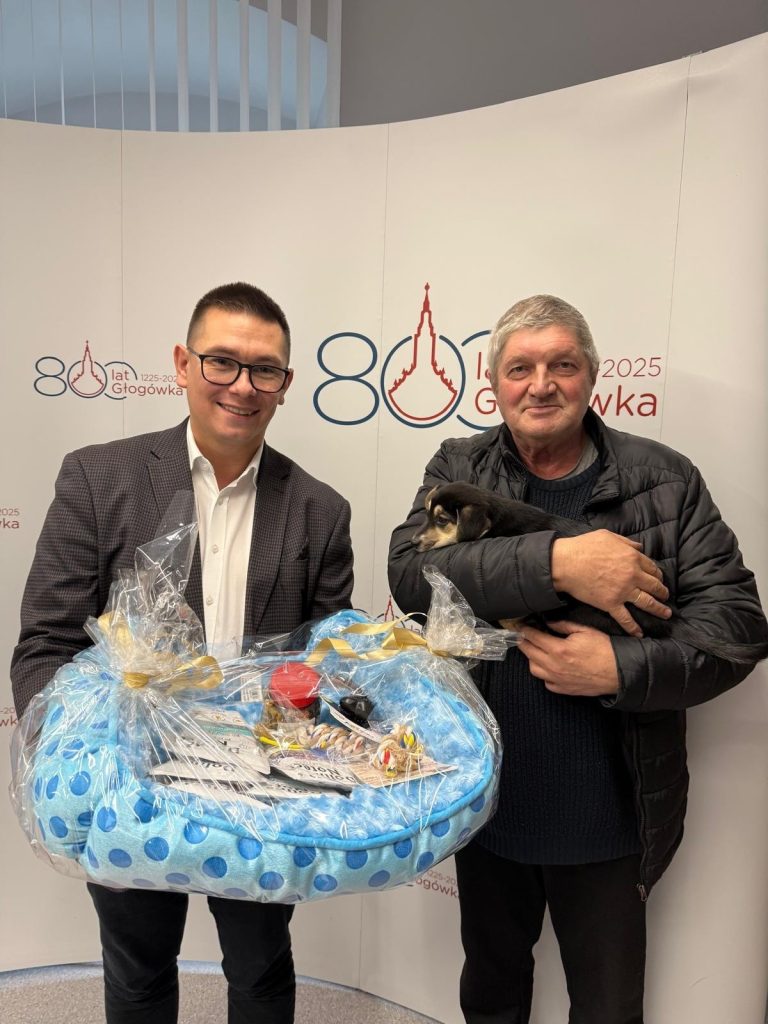 Nowi opiekunowie nie odeszli z pustymi rękami. Burmistrz przekazał im psie upominki na dobry start, dziękując za otwarte serca.